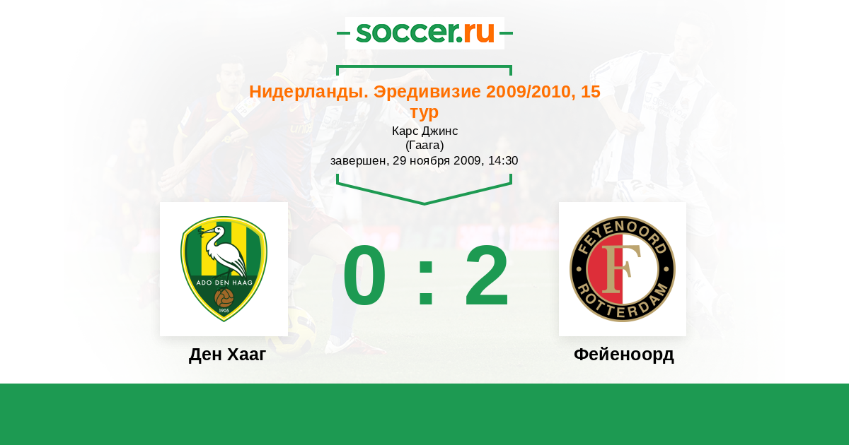 Нидерланды. Эредивизи 21.02.2010 Фейеноорд Логотип футбольный клуб Фейеноорд (Роттердам) 2:2 Логотип футбольный клуб Ден Хааг (Гаага) Ден Хааг
