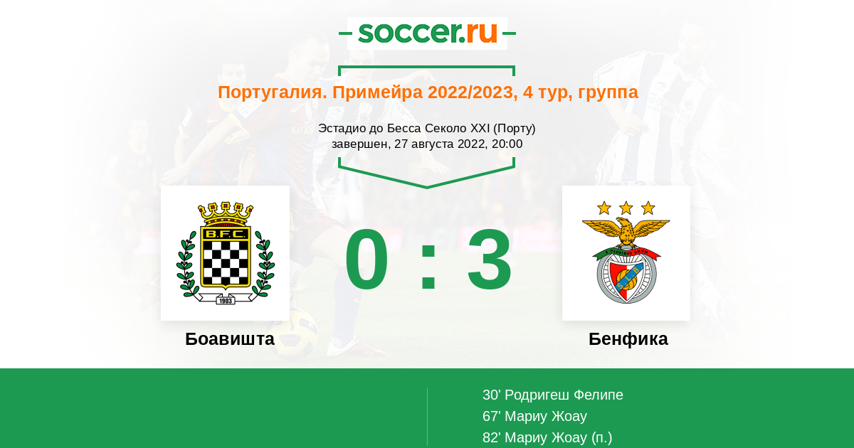 Протокол матча Боавишта против Бенфика