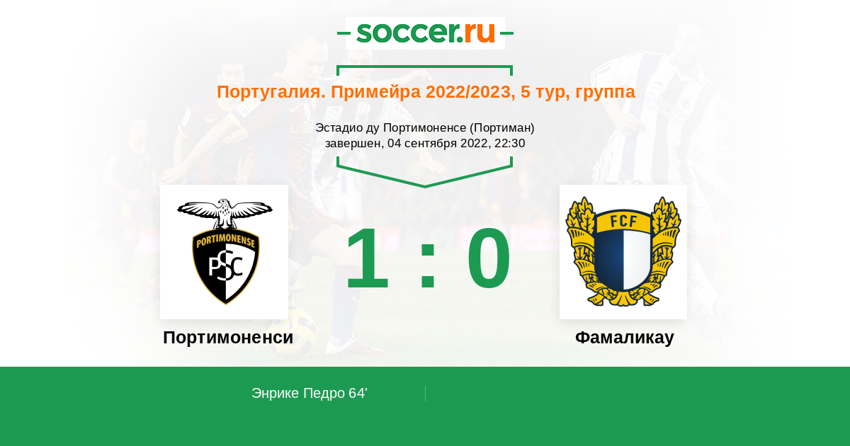 64' (1:0) Энрике Педро (44) (Релвас Филипе (22))