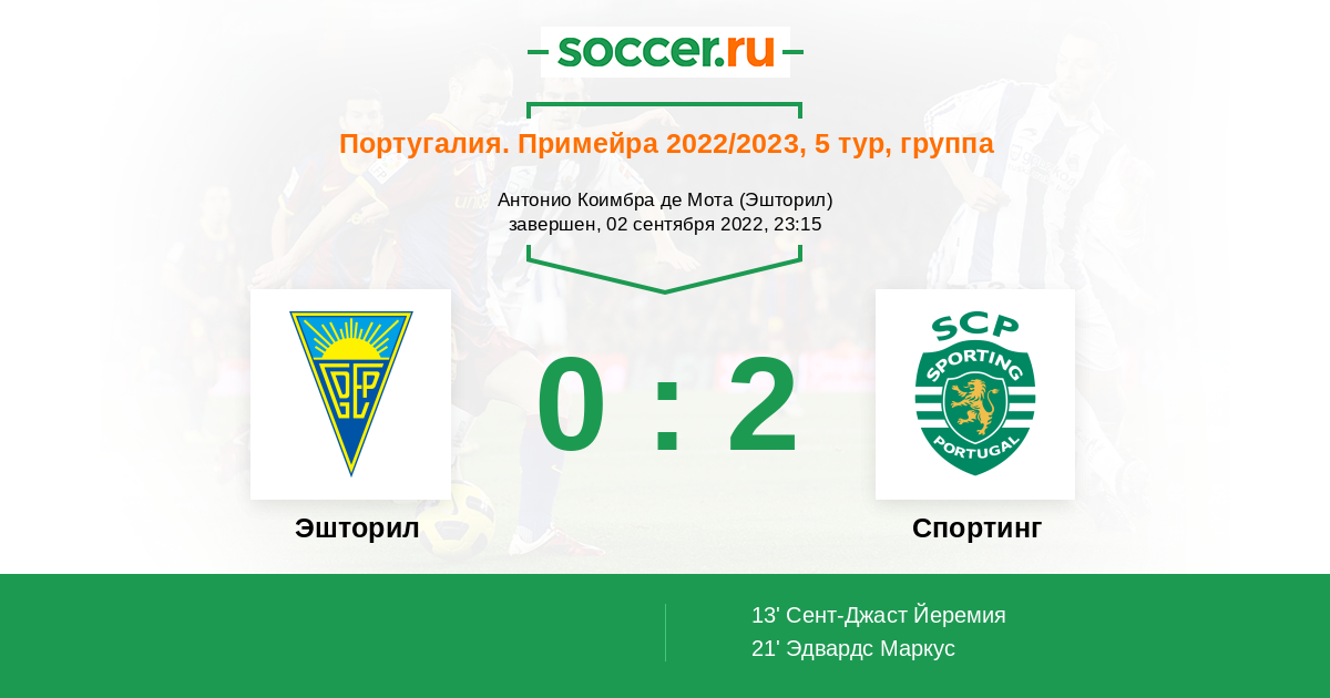 13' (0:1) Сент-Джаст Йеремия (3) (Гонсалвеш Педру (28))