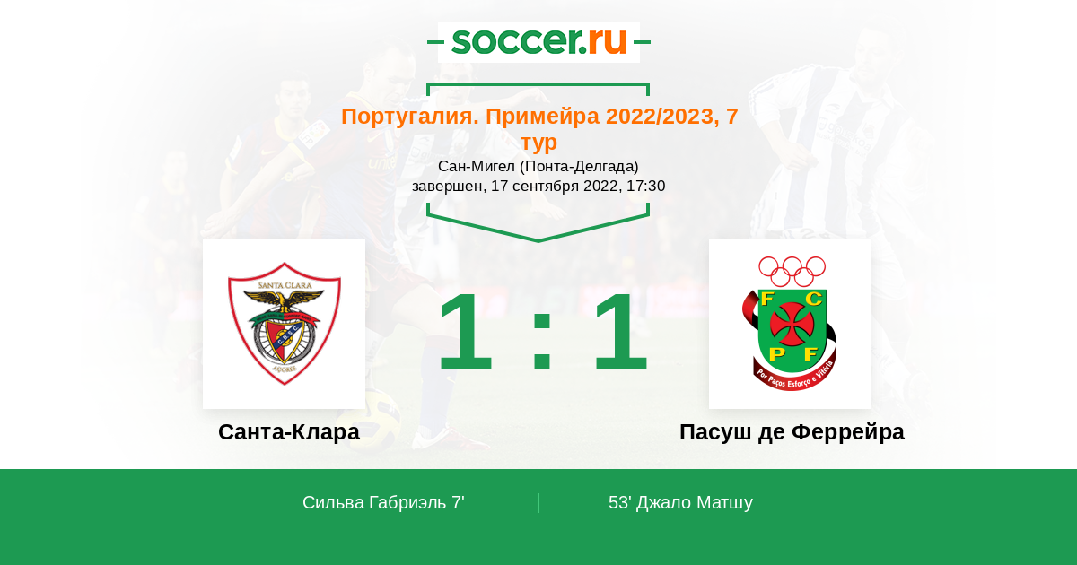 Протокол матча Санта-Клара против Пасуш де Феррейра