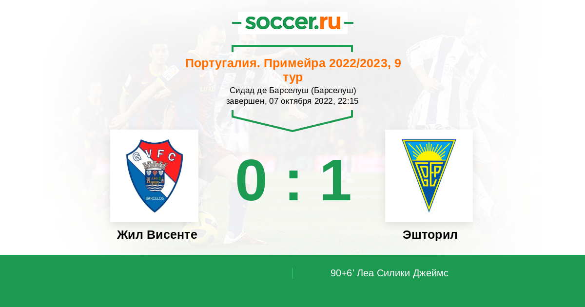 Протокол матча Жил Висенте против Эшторил