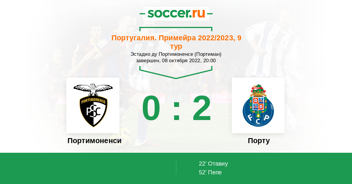 22' (0:1) Отавиу (25) (Эванилсон (30))