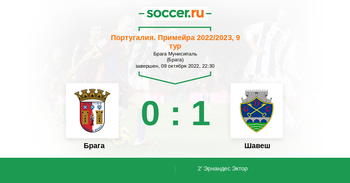 Протокол матча Брага против Шавеш