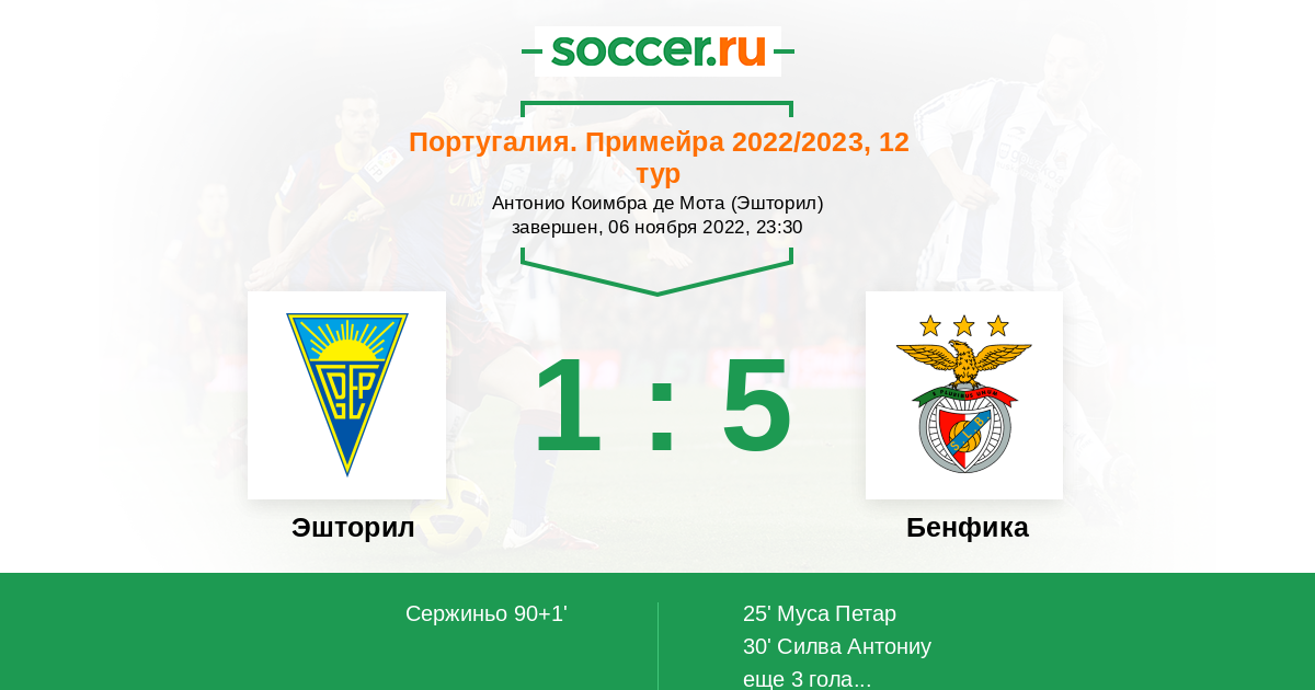 90+1' (1:5) Сержиньо (8) (Беншимол Жилсон (29))