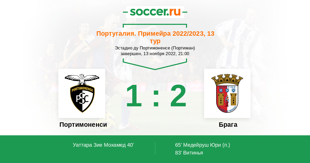 Протокол матча Портимоненси против Брага