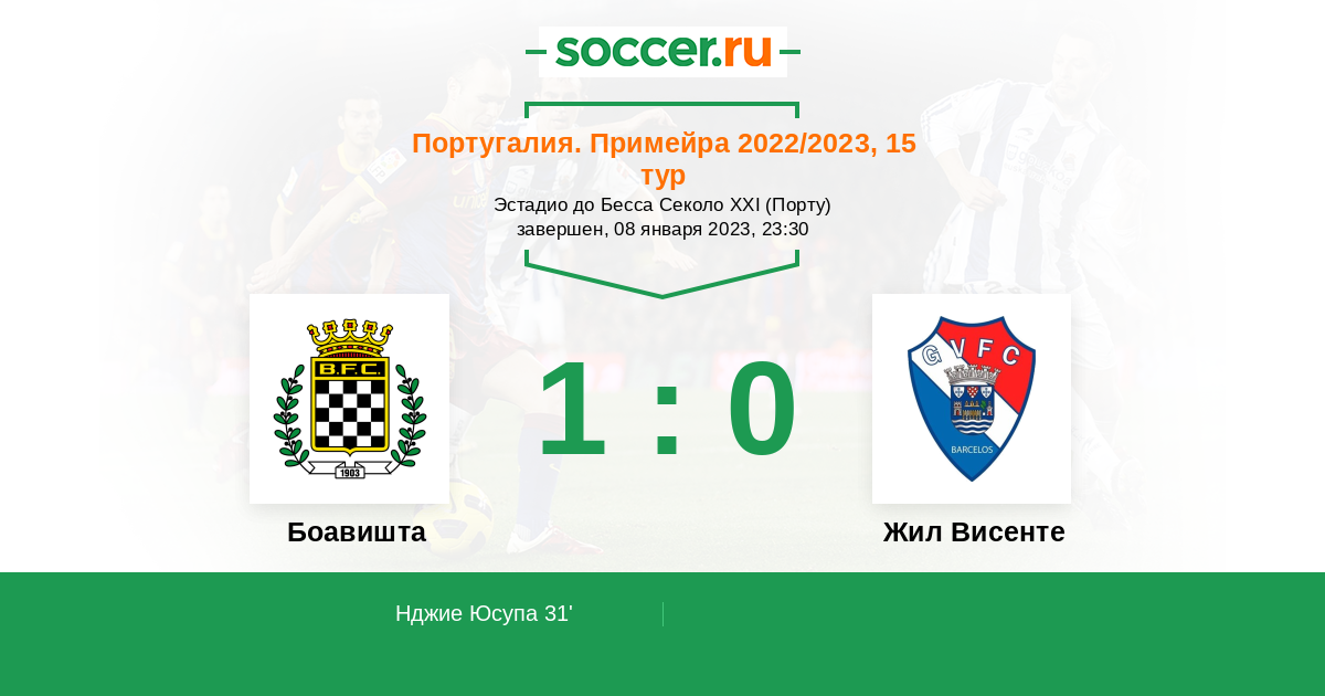 Протокол матча Боавишта против Жил Висенте