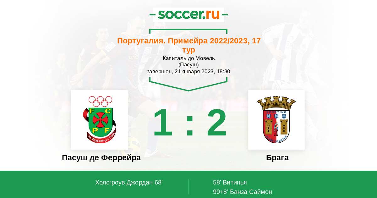 Протокол матча Пасуш де Феррейра против Брага