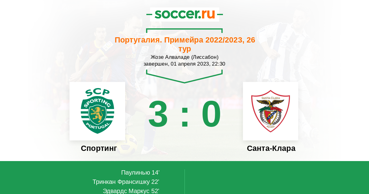 Протокол матча Спортинг против Санта-Клара
