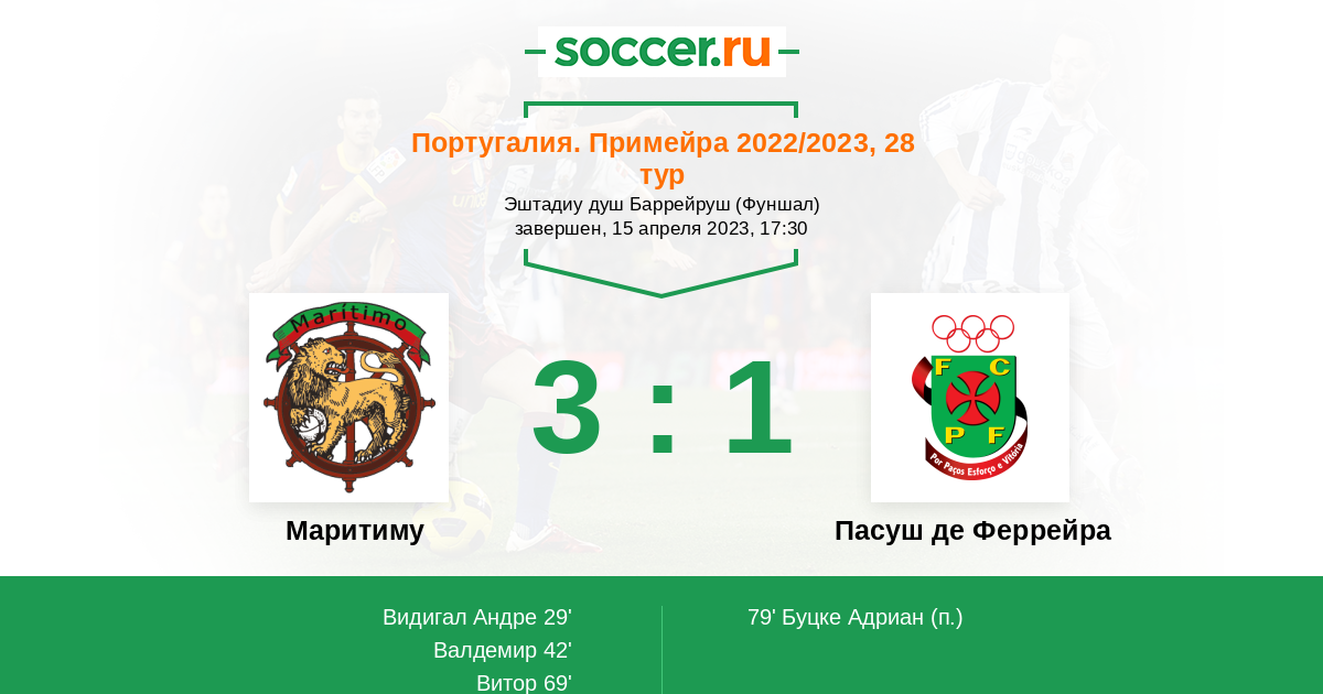 Протокол матча Маритиму против Пасуш де Феррейра