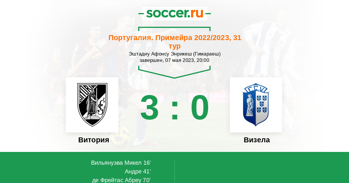 Протокол матча Витория против Визела