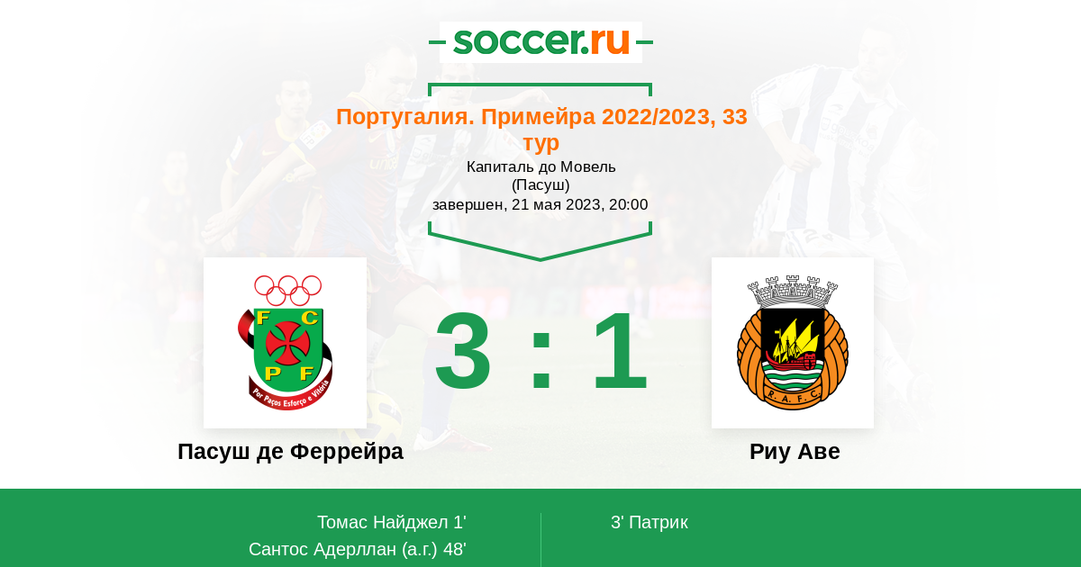 Протокол матча Пасуш де Феррейра против Риу Аве