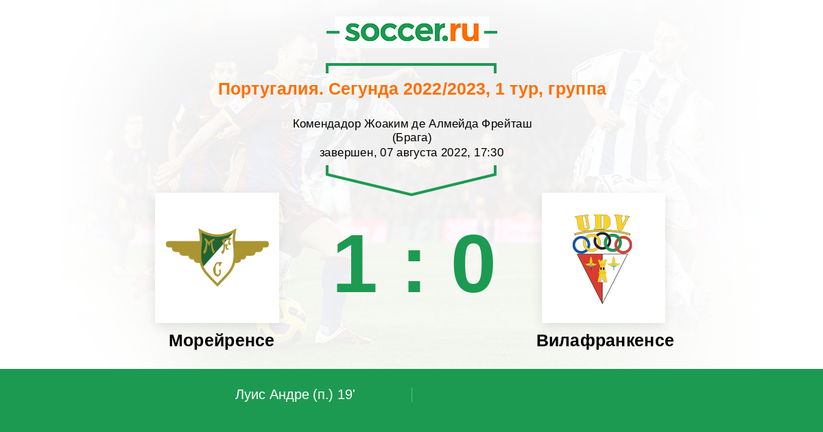 Протокол матча Морейренcе против Вилафранкенсе