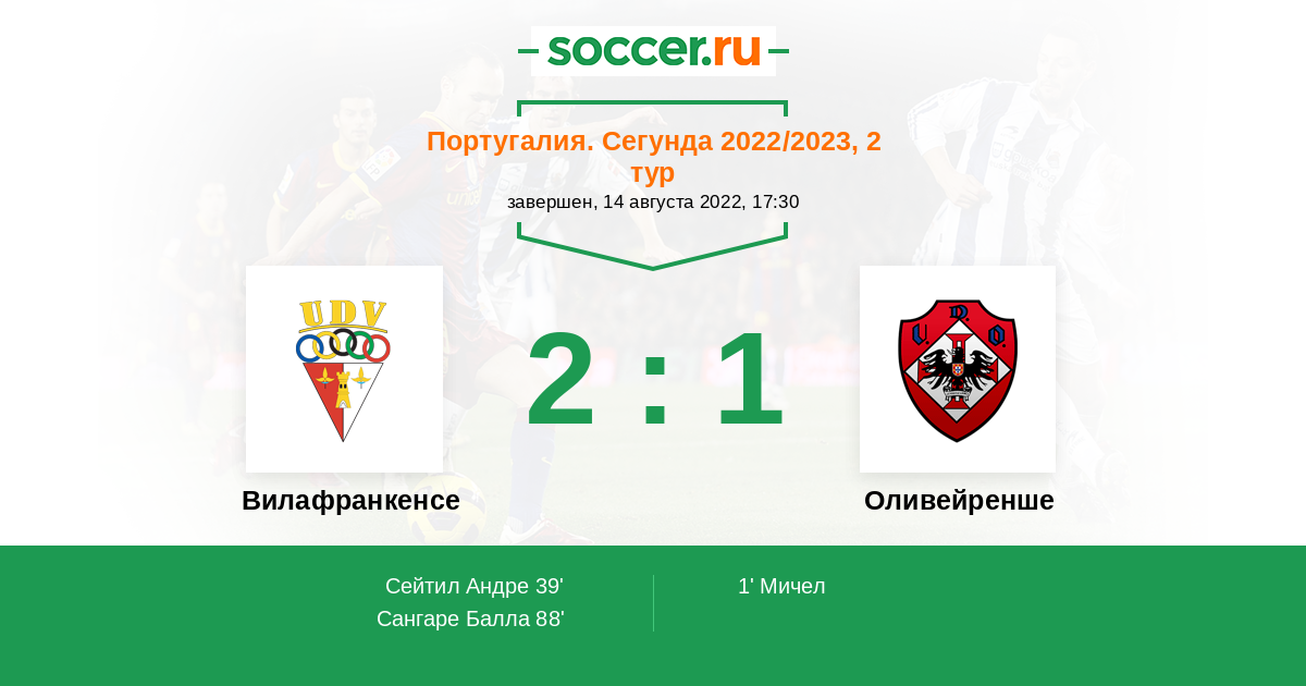 Протокол матча Вилафранкенсе против Оливейренше