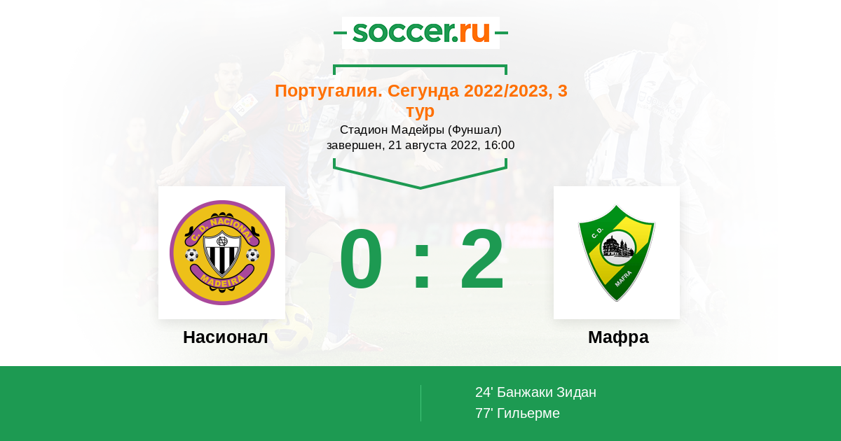 Протокол матча Насионал против Мафра