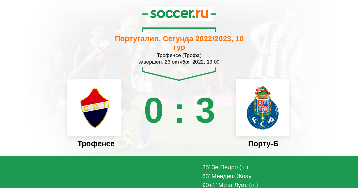 Протокол матча Трофенсе против Порту-Б