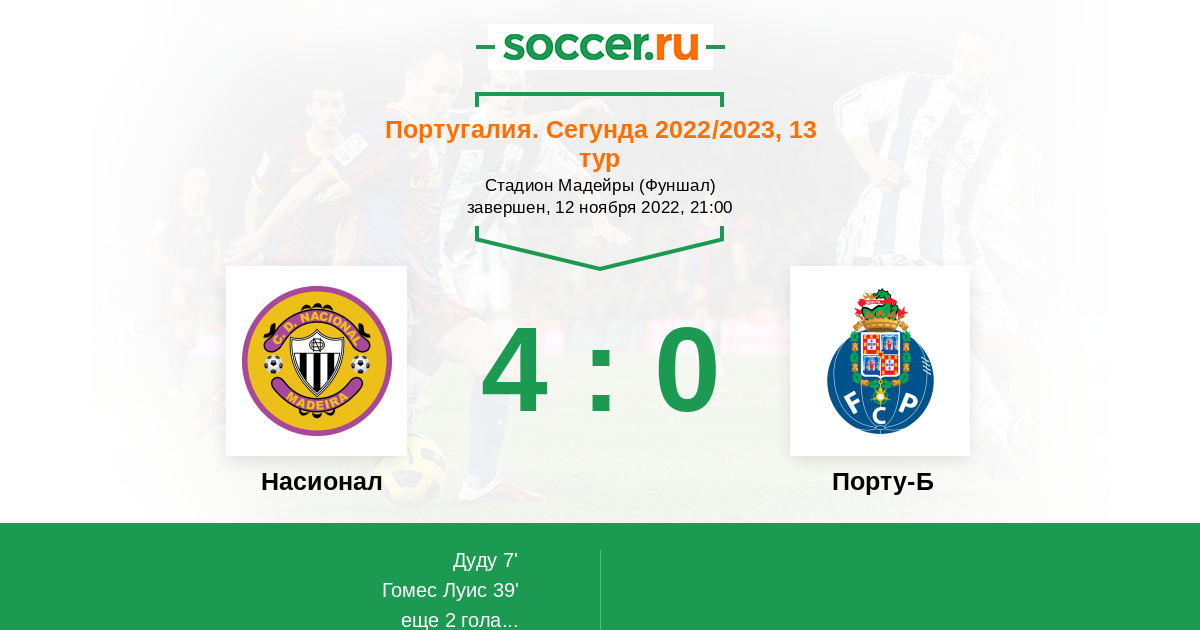 Протокол матча Насионал против Порту-Б