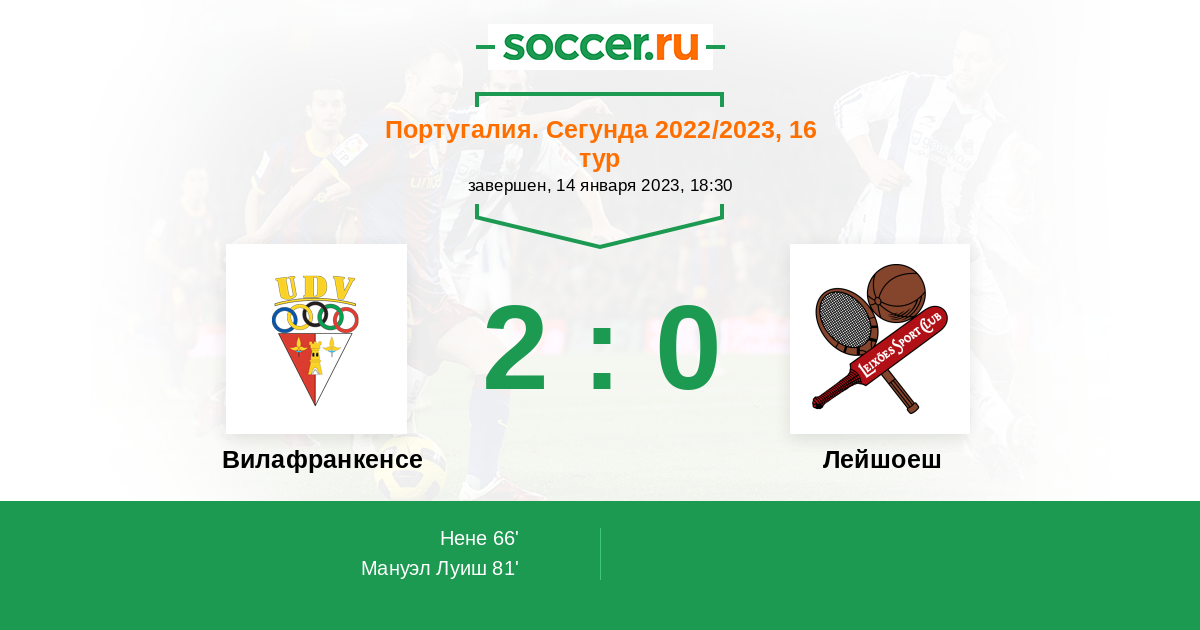 Протокол матча Вилафранкенсе против Лейшоеш