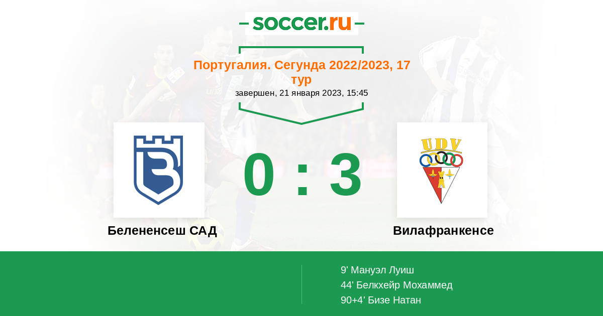 Протокол матча Белененсеш САД против Вилафранкенсе