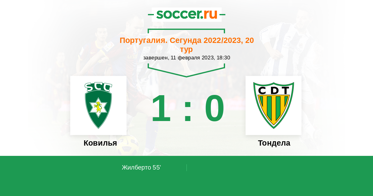 Протокол матча Ковилья против Тондела