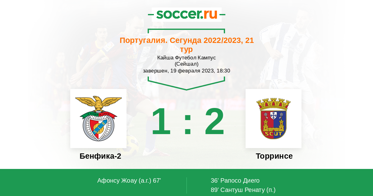 Протокол матча Бенфика-2 против Торринсе