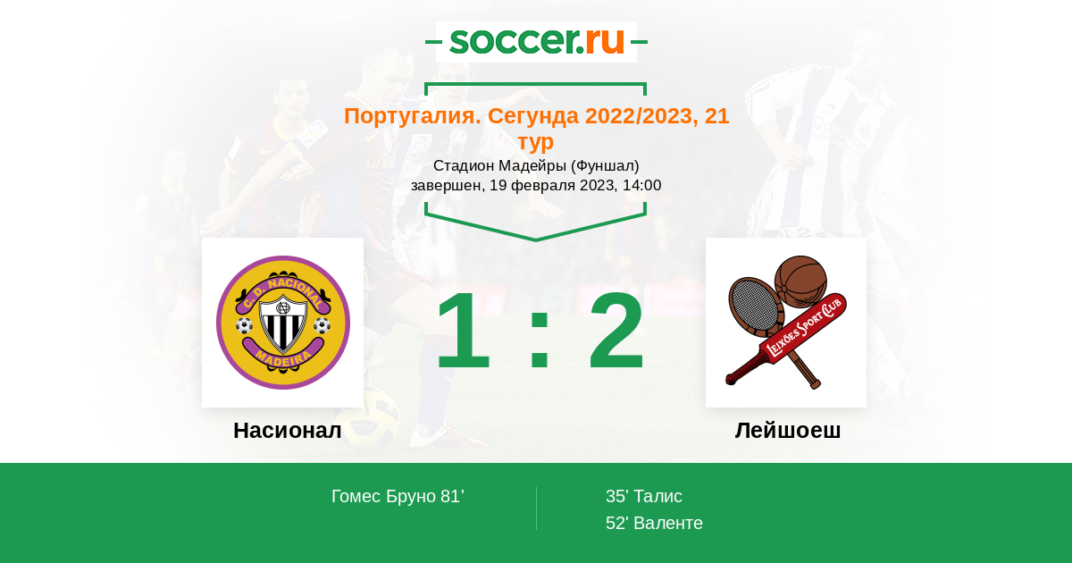 Протокол матча Насионал против Лейшоеш