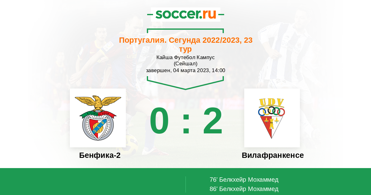 Протокол матча Бенфика-2 против Вилафранкенсе