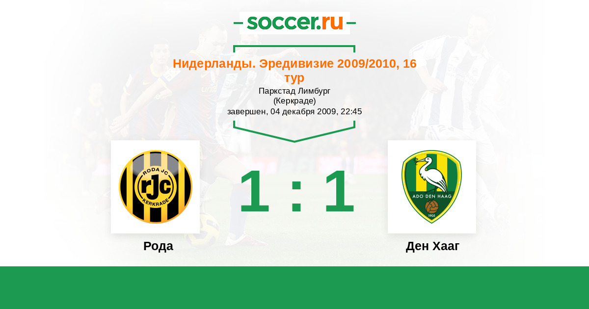 Нидерланды. Эредивизи 11.12.2010 Рода Логотип футбольный клуб Рода (Керкраде) 1:1 Логотип футбольный клуб Ден Хааг (Гаага) Ден Хааг