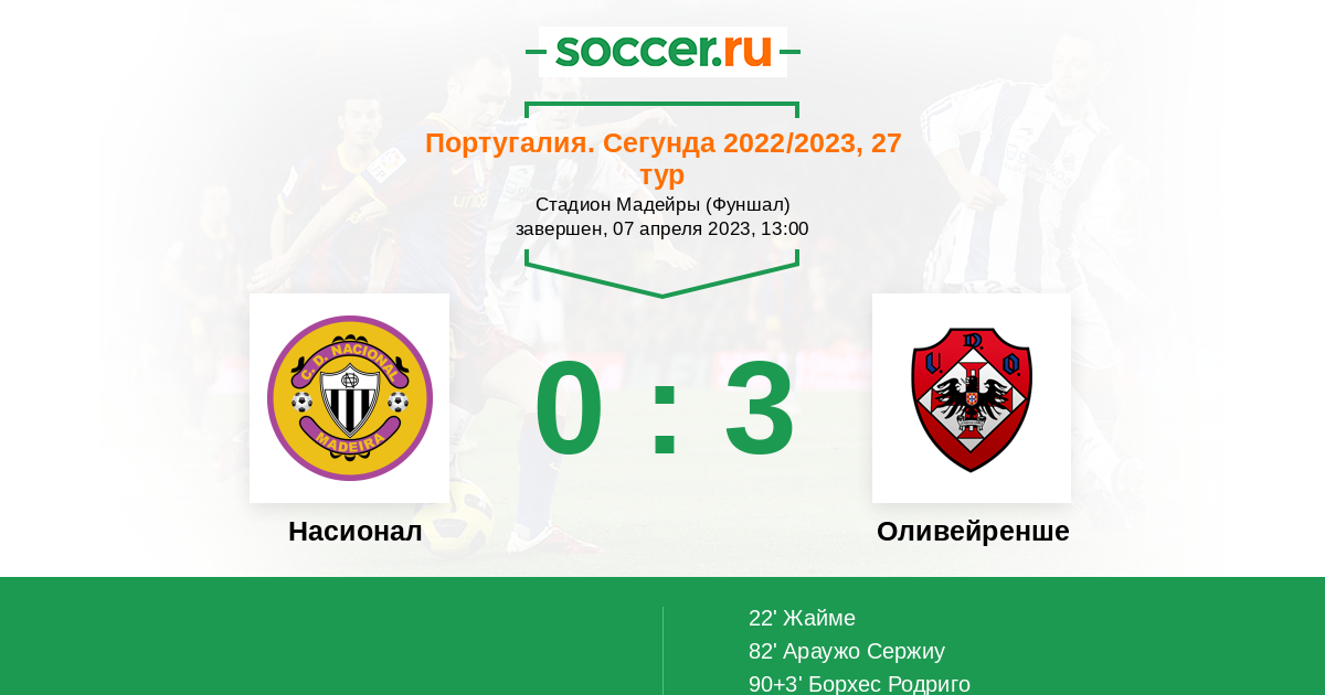 Протокол матча Насионал против Оливейренше