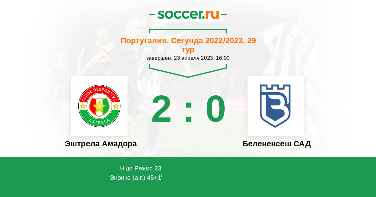Протокол матча Эштрела Амадора против Белененсеш САД