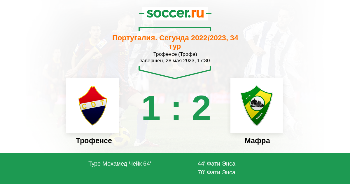 Протокол матча Трофенсе против Мафра