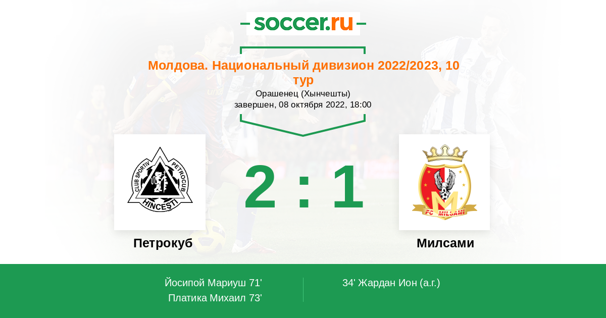 34' (0:1) Автогол Жардан Ион (90)