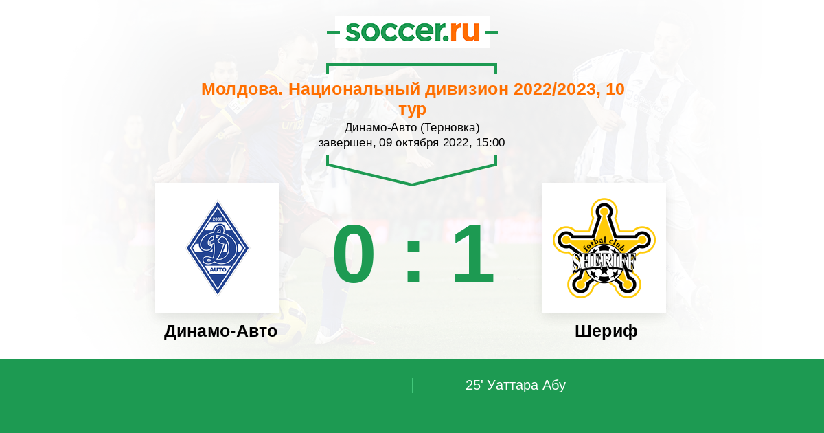 Протокол матча Динамо-Авто против Шериф