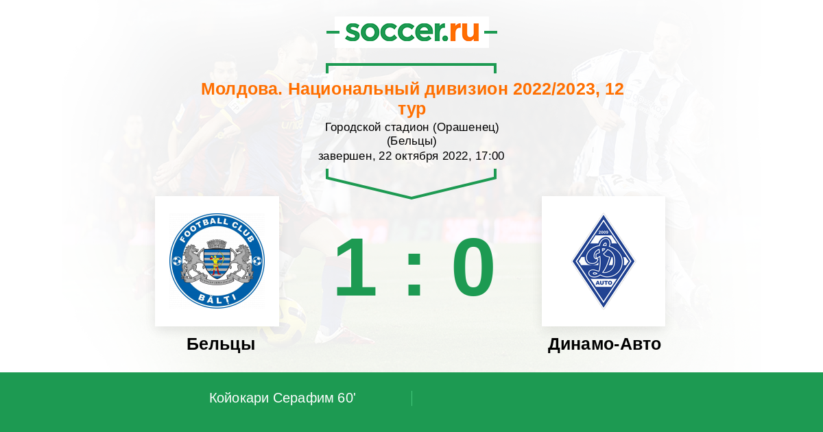 Протокол матча Бельцы против Динамо-Авто