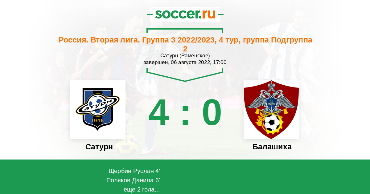 Протокол матча Сатурн против Балашиха