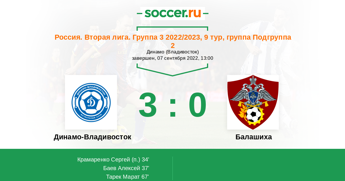 Протокол матча Динамо Владивосток против Балашиха