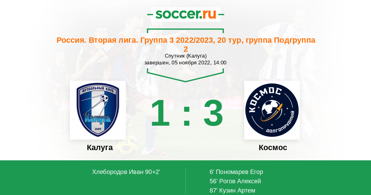 Протокол матча Калуга против Космос
