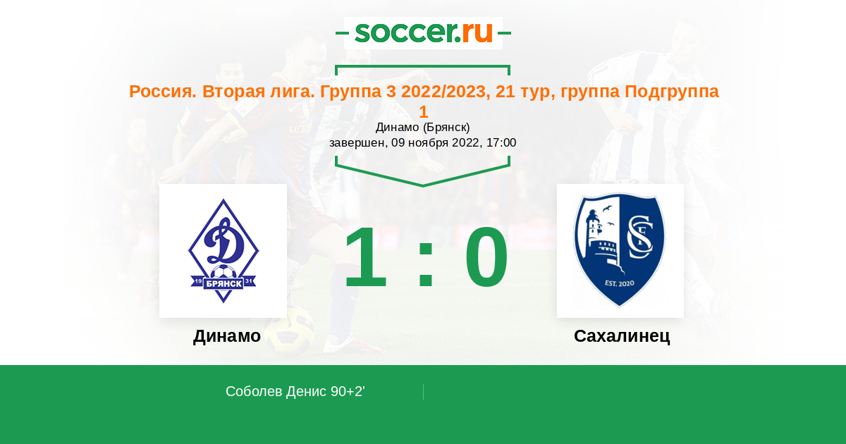 Протокол матча Динамо Брянск против Сахалинец