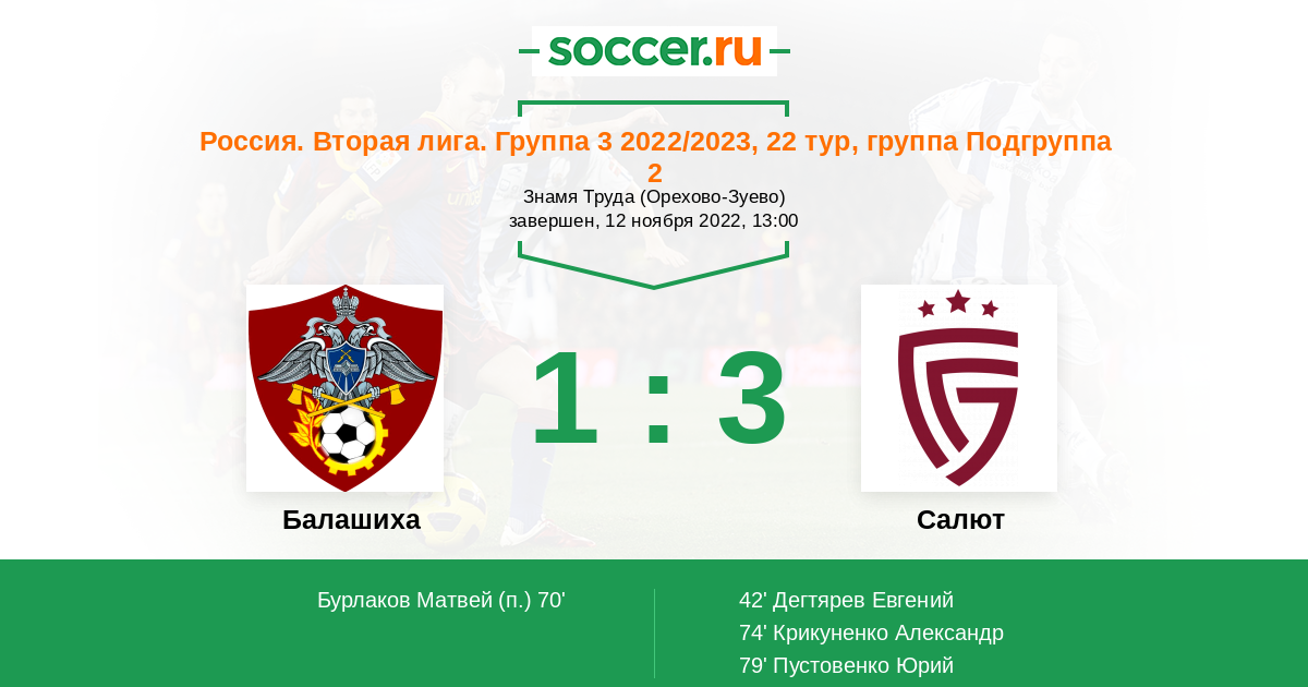Протокол матча Балашиха против Салют