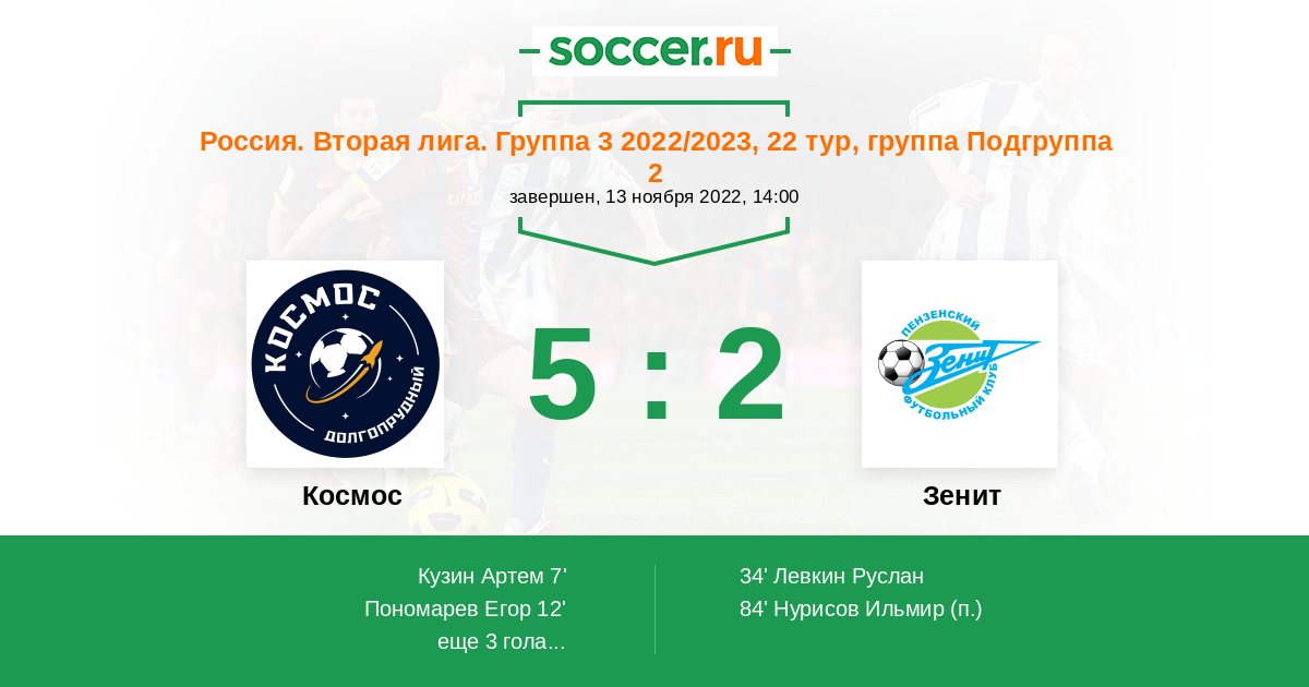 Протокол матча Космос против Зенит