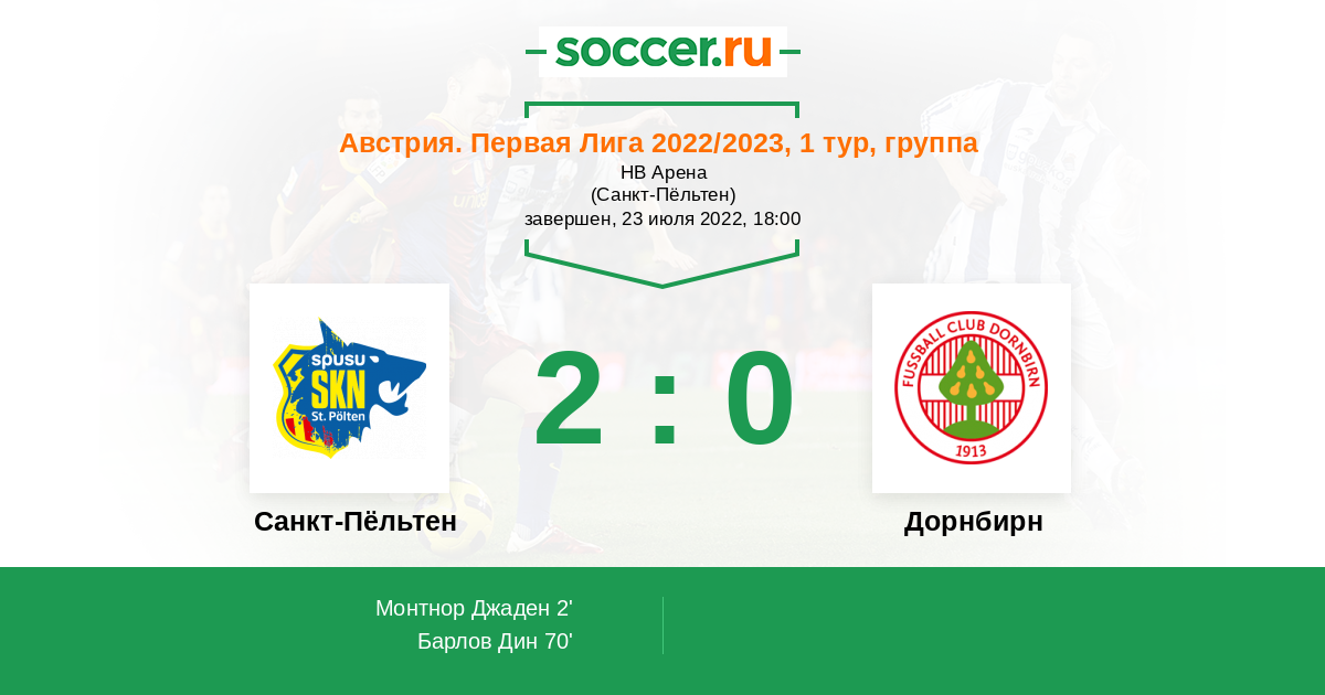 Протокол матча Санкт-Пёльтен против Дорнбирн
