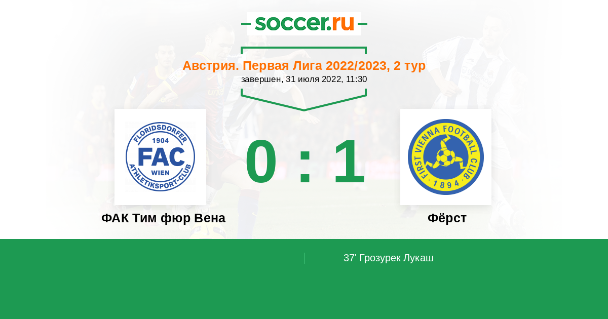 Протокол матча ФАК Тим фюр Вена против Фёрст