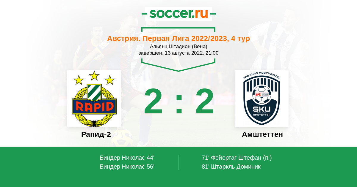 Протокол матча Рапид-2 против Амштеттен
