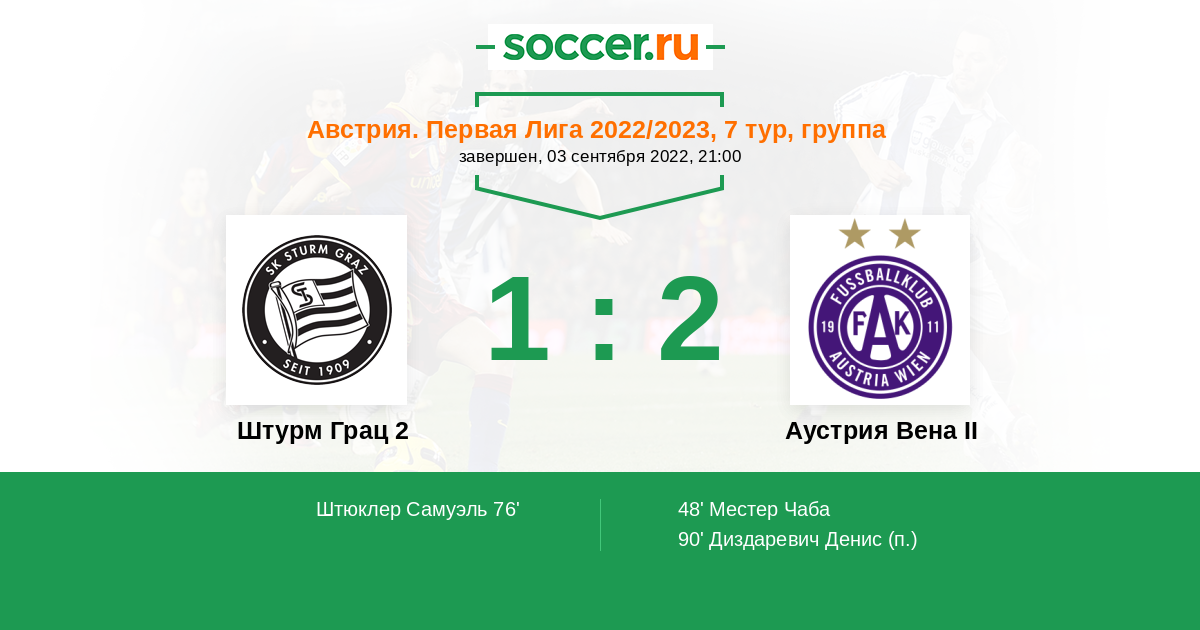 Протокол матча Штурм Грац 2 против Аустрия Вена II
