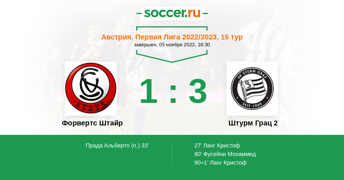 Протокол матча Форвертс Штайр против Штурм Грац 2