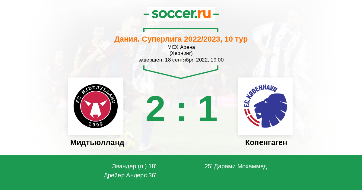 Протокол матча Мидтьюлланд против Копенгаген