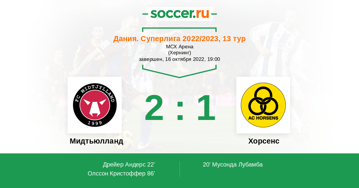 22' (1:1) Дрейер Андерс (36) (Систо Пионе (7))