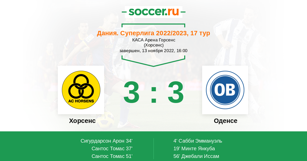 Протокол матча Хорсенс против Оденсе