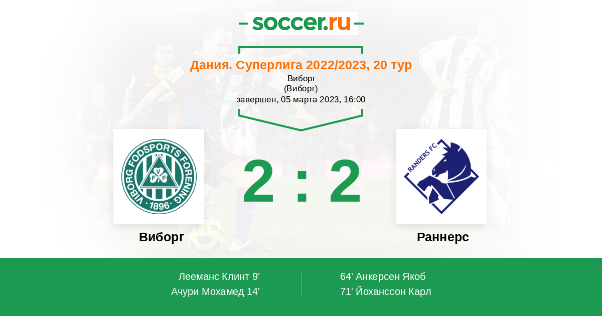 71' (2:2) Йоханссон Карл (4) (Анкерсен Якоб (9))