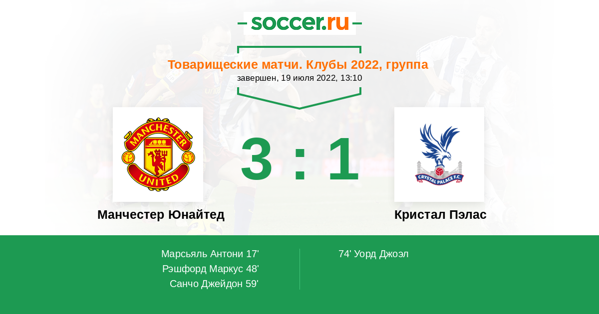 Протокол матча Манчестер Юнайтед против Кристал Пэлас